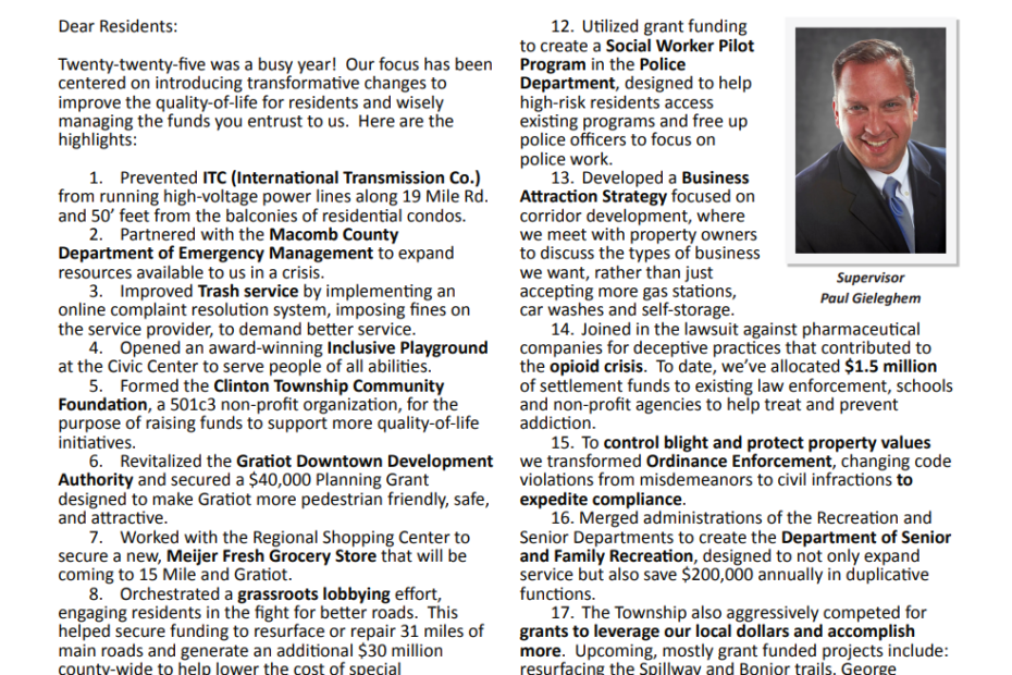 Dear Friends & Supporters, Some down-time over the holidays provided me the opportunity for a little reflection that I wanted to share with you as friends, supporters, and those who helped me take the helm… Thank You for Your Support: A Lookback on 2025